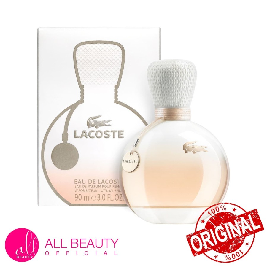 Eau de Lacoste adalah feminine fragrance dengan aroma floral fruity yang manis. Komposisi white pineapple, mandarin dan bergamot, ditemani wangi Sambac jasmine, orange blossom dan pineapple blossom. Serta ditutup oleh wangi sandalwood, peru balsam, vetiver dan vanilla. Bentuk kemasannya didesain dengan inspirasi bentuk bola tenis yang simpel dan uniersal, sesuai dengan ideologi dari label Lacoste yang ternama.